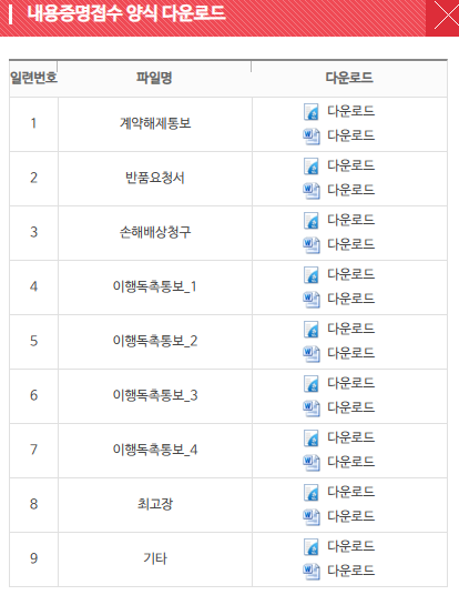 위와 같이 3가지 정도의 내용증명 양식 다운 파일을 공유해 드립니다. 위의 서식 중에서 별로 마음에 드는 것이 없다면, 다양한 내용증명 양식 다운을 할 수 있는 모음 사이트도 아래와 같이 공유해 드립니다. 아래 버튼을 참고하시기 바랍니다.