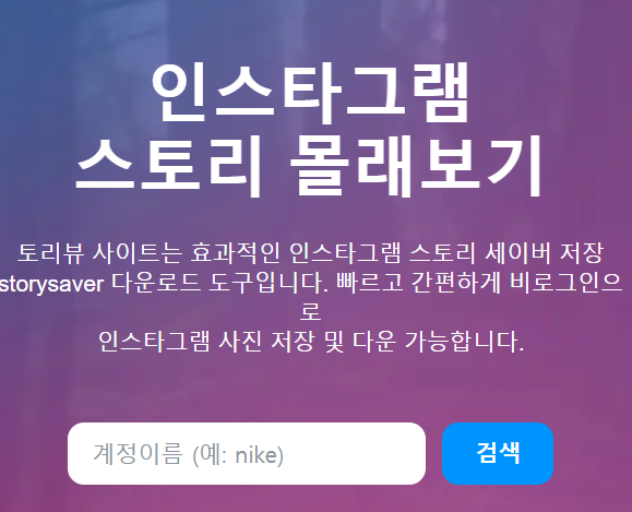 해당 인스타 스토리 몰래 보기 사이트에서는 인스타그램 계정을 검색하거나 다른 사람의 인스타 스토리를 엿볼 수 있는 기능을 제공하고 있습니다.
