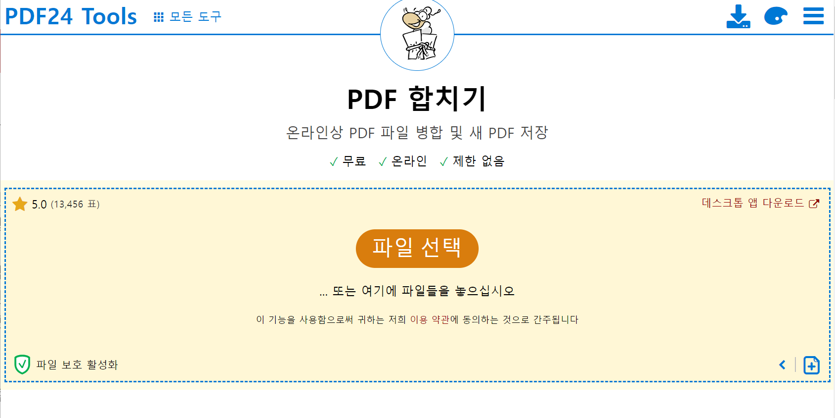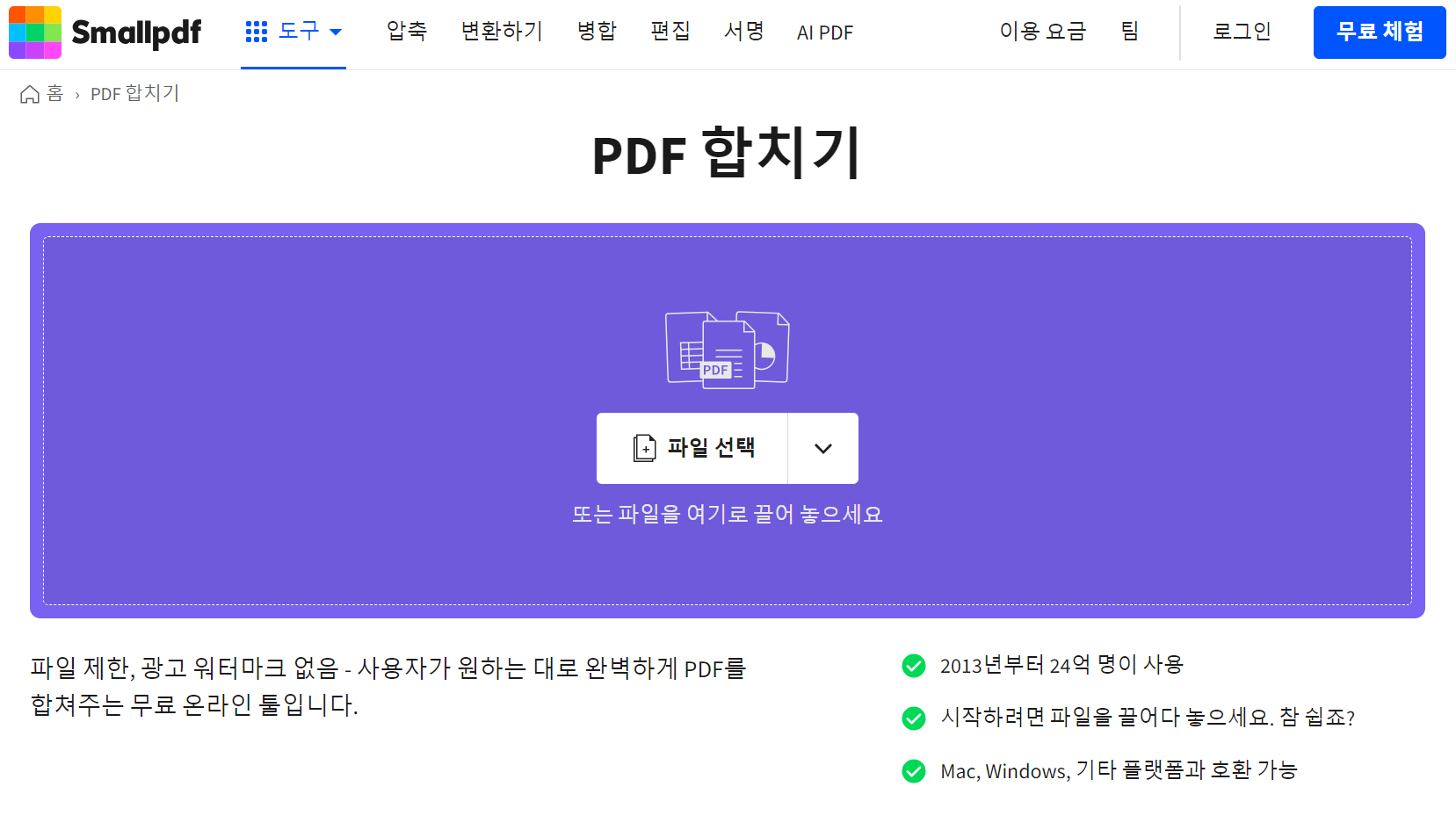마찬가지로 파일을 선택해서 불러오거나 파일을 화면으로 끌어당겨서 병합하는 형태로 너무나 간단합니다.