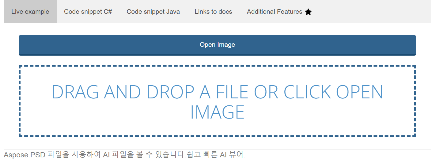 위 버튼으로 들어가시면 ai 파일 보는방법이 간단해집니다. 해당 툴은 회원가입 없이도 사용할 수 있으며, 드래그 앤 드롭 방식으로 AI 파일을 업로드하여 바로 확인할 수 있습니다.